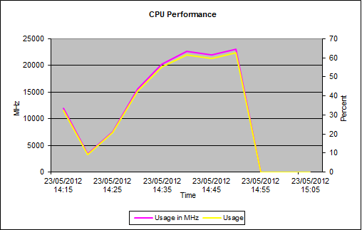 So let’s say you’ve built your solution to meet the needs of a 100 simultaneous virtual desktop connections, but your VSIMax figure averages out well below that figure (worryingly so!). Where do you go from here? At this stage, this is where performance of the hypervisor host comes into play. In our particular test, the hypervisor in use is vSphere. This is good because vCenter automatically collects performance statistics and stores them in the database, so we don’t need to babysit real time statistics to know where the bottleneck is, we can just look back restrospectively in vCenter.